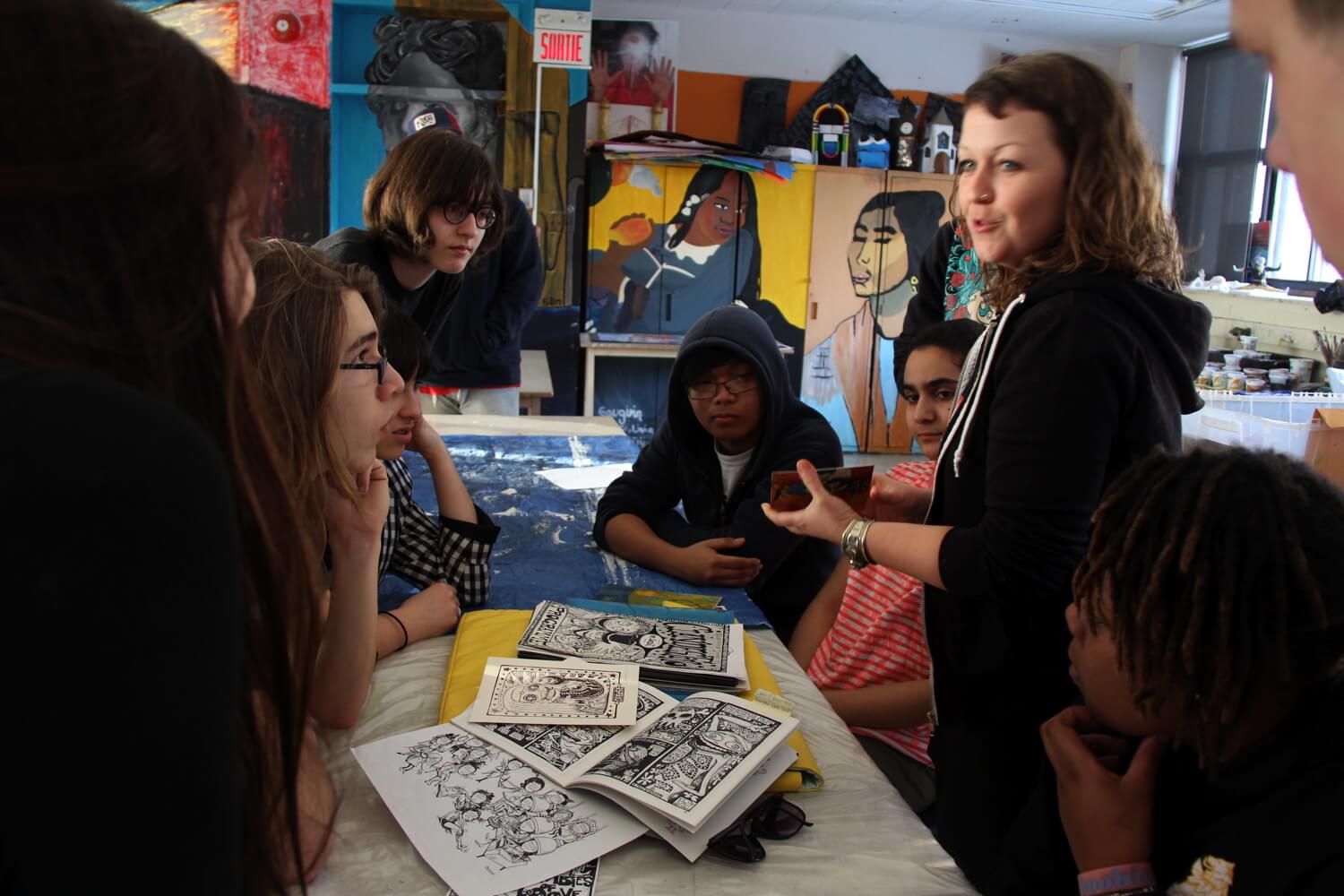 Chaque semaine, ces jeunes font preuve de curiosité, d’ouverture et de créativité. En trois mois, ils ont expérimenté le tape art, l’aérographe (airbrush) avec ZEK, le pochoir, la bande dessinée avec le bédéiste Lateef Martin, l’illustration avec Caro Caron (EN MASSE), le design de jeux vidéos avec le concepteur d’Ubisoft Nicola Godin et le stop-motion avec le photographe Stéphane Cocke, en plus de visiter la galerie FreshPaint et d’entamer le processus d’idéation de leur propre murale collective avec le muraliste Gene Pendon.