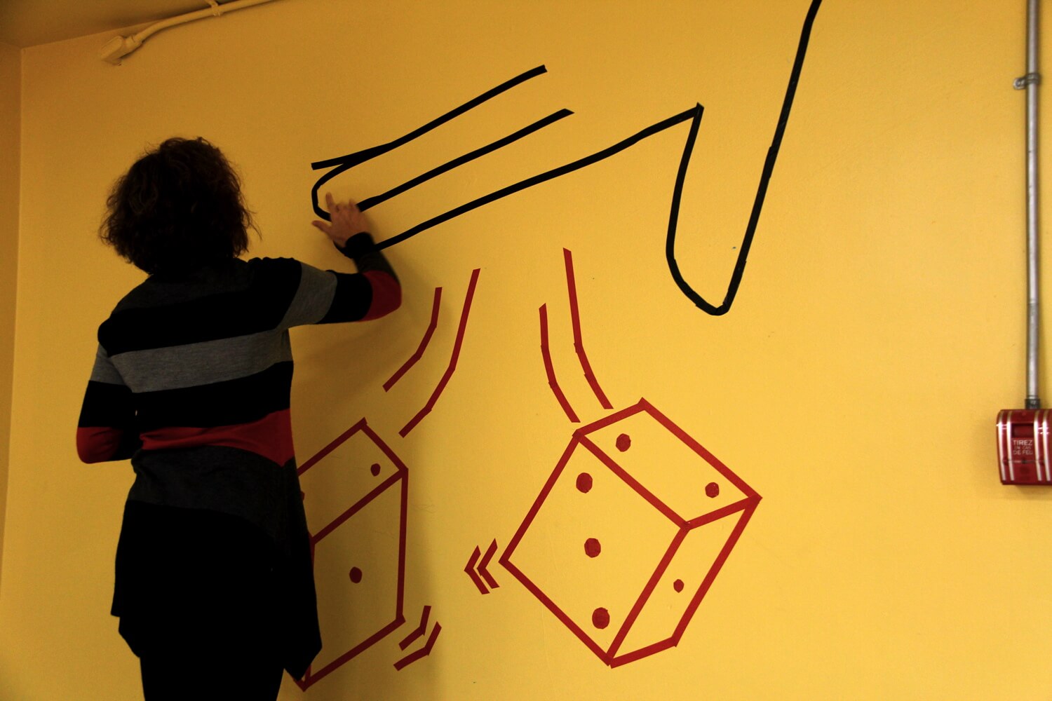 Dans le cadre des ateliers d’art mural offerts chaque semaine par MU, les participants ont exploré différentes techniques (tape art, pochoirs, lettrage), puis ont travaillé étroitement avec le muraliste Gene Pendon afin de créer, pour les quatre murs du hall d’entrée du Centre, une murale qui reflètent leurs intérêts et leurs motivations.