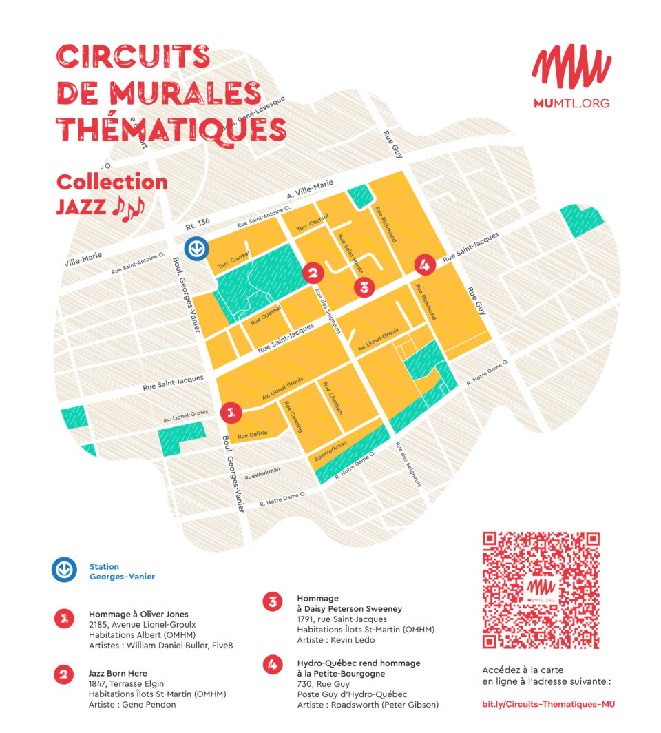 Avez-vous déjà entendu parler du Rockhead’s Paradise ou encore du Burgundy Lion ? Ces bars festifs d’époque qui ont accueilli des pointures dont on se souviendra encore pour longtemps ? Voilà qui tombe bien, MU a justement souhaité rendre hommage à trois artistes d’exception de la scène jazz montréalaise, au travers d’œuvres murales d’envergure !