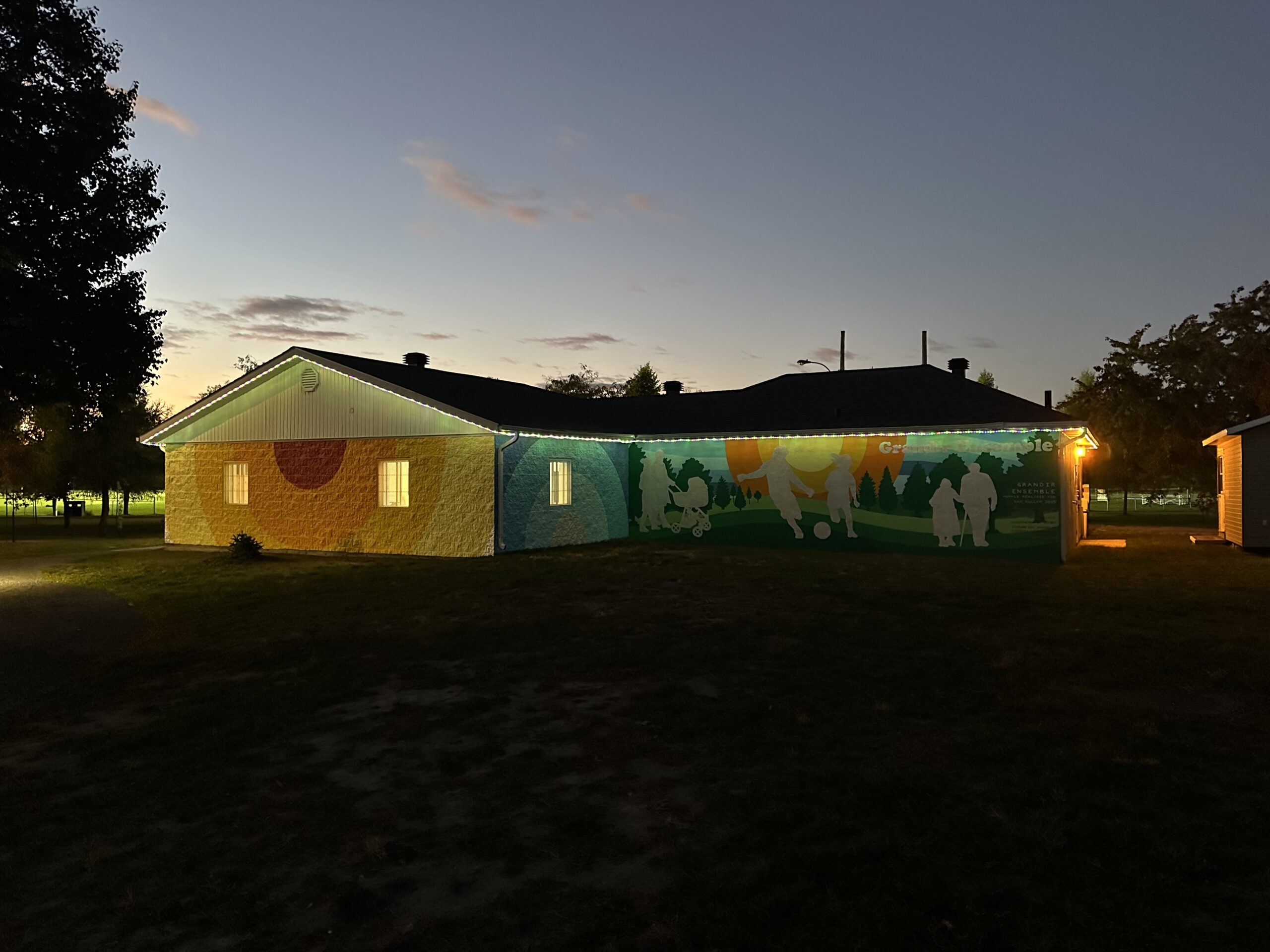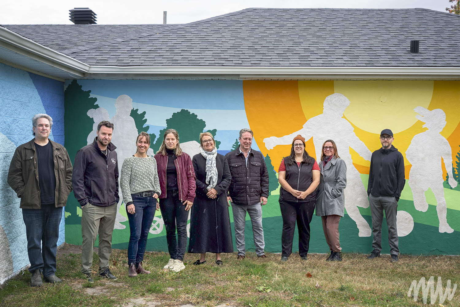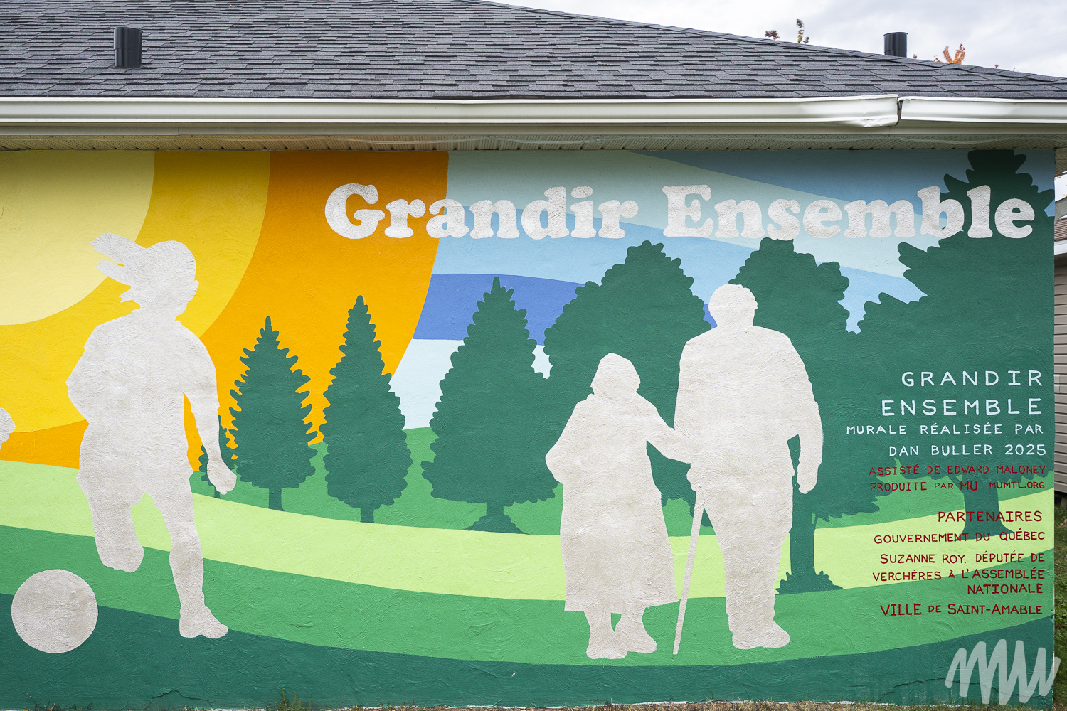 Cette murale vient compléter les travaux d’aménagement du Parc Le Rocher qui a été transformé en véritable terrain de jeu à ciel ouvert pour toute la famille. Elle a été réalisée par Dan Buller assisté d’Edward Maloney sur le chalet à l’entrée du parc et accueille ainsi les visiteurs qui viennent profiter des nouveaux terrains de jeu.