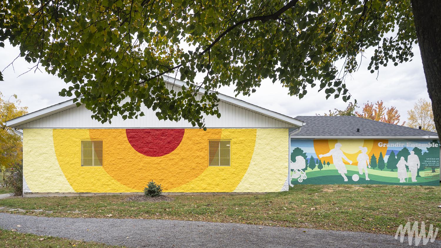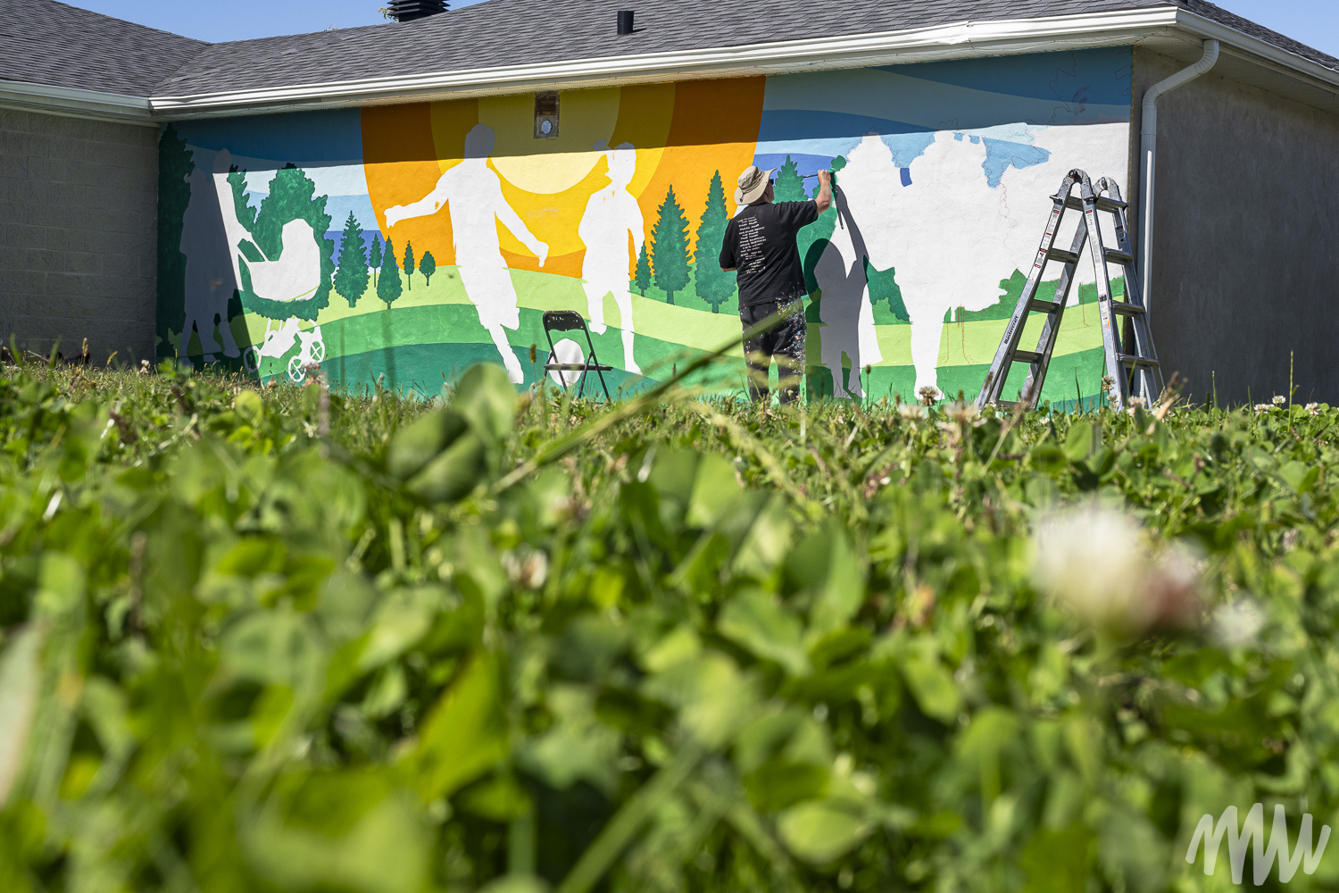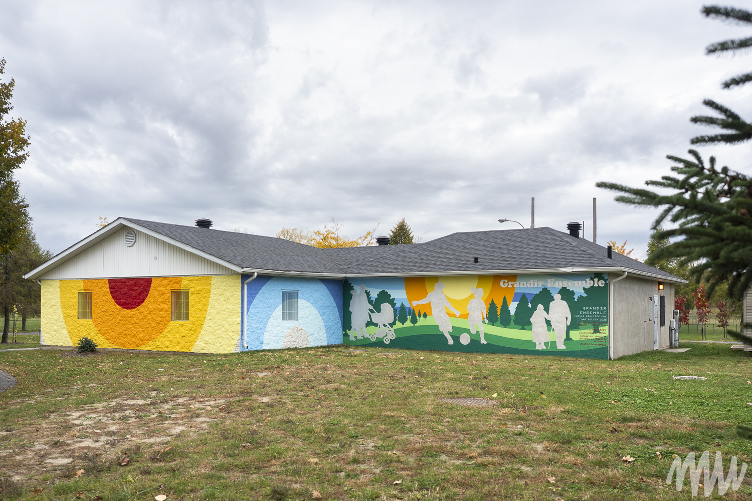 Cette murale vient compléter les travaux d’aménagement du Parc Le Rocher qui a été transformé en véritable terrain de jeu à ciel ouvert pour toute la famille. Elle a été réalisée par Dan Buller assisté d’Edward Maloney sur le chalet à l’entrée du parc et accueille ainsi les visiteurs qui viennent profiter des nouveaux terrains de jeu.