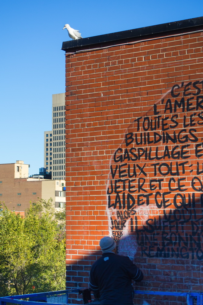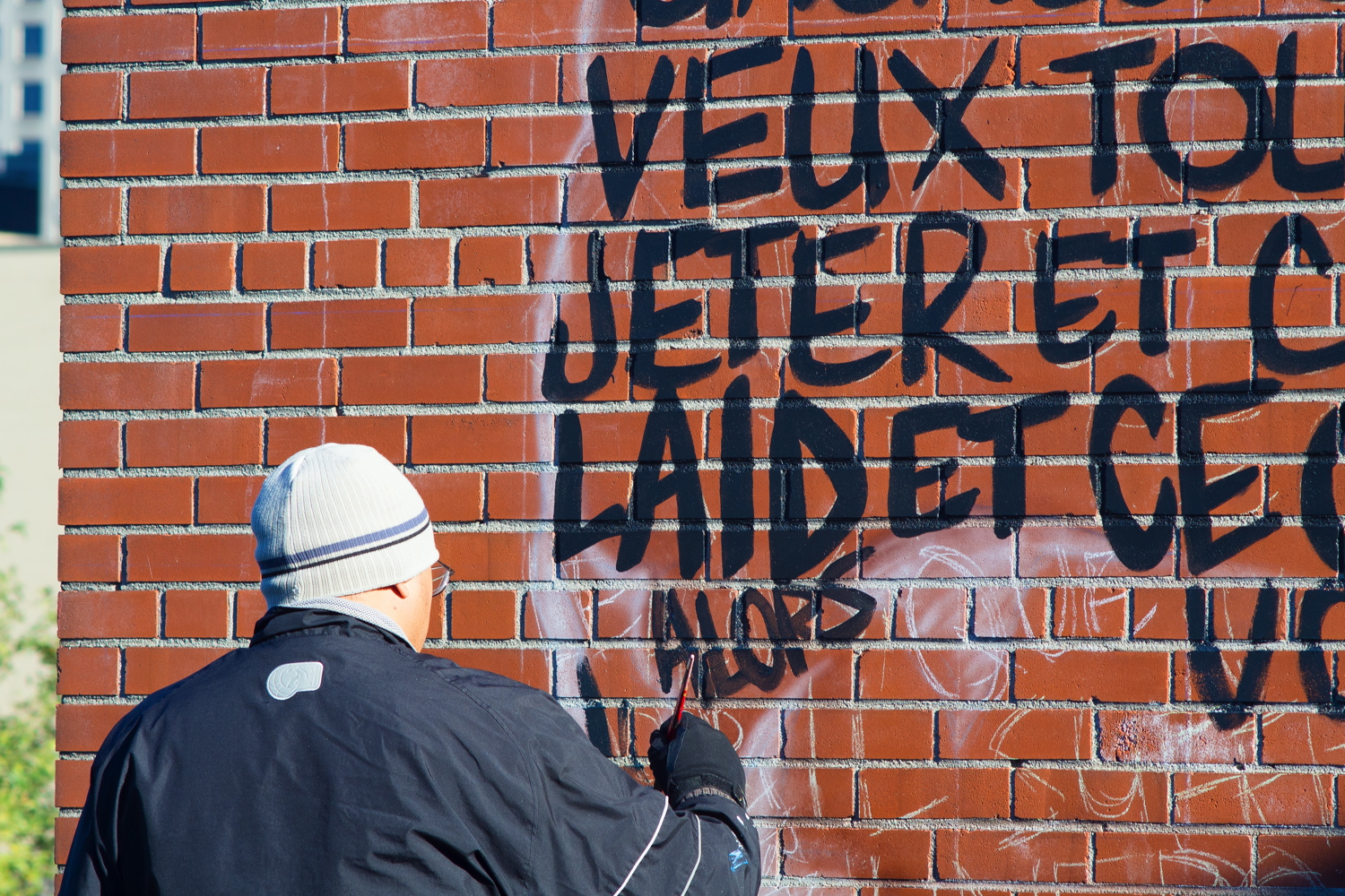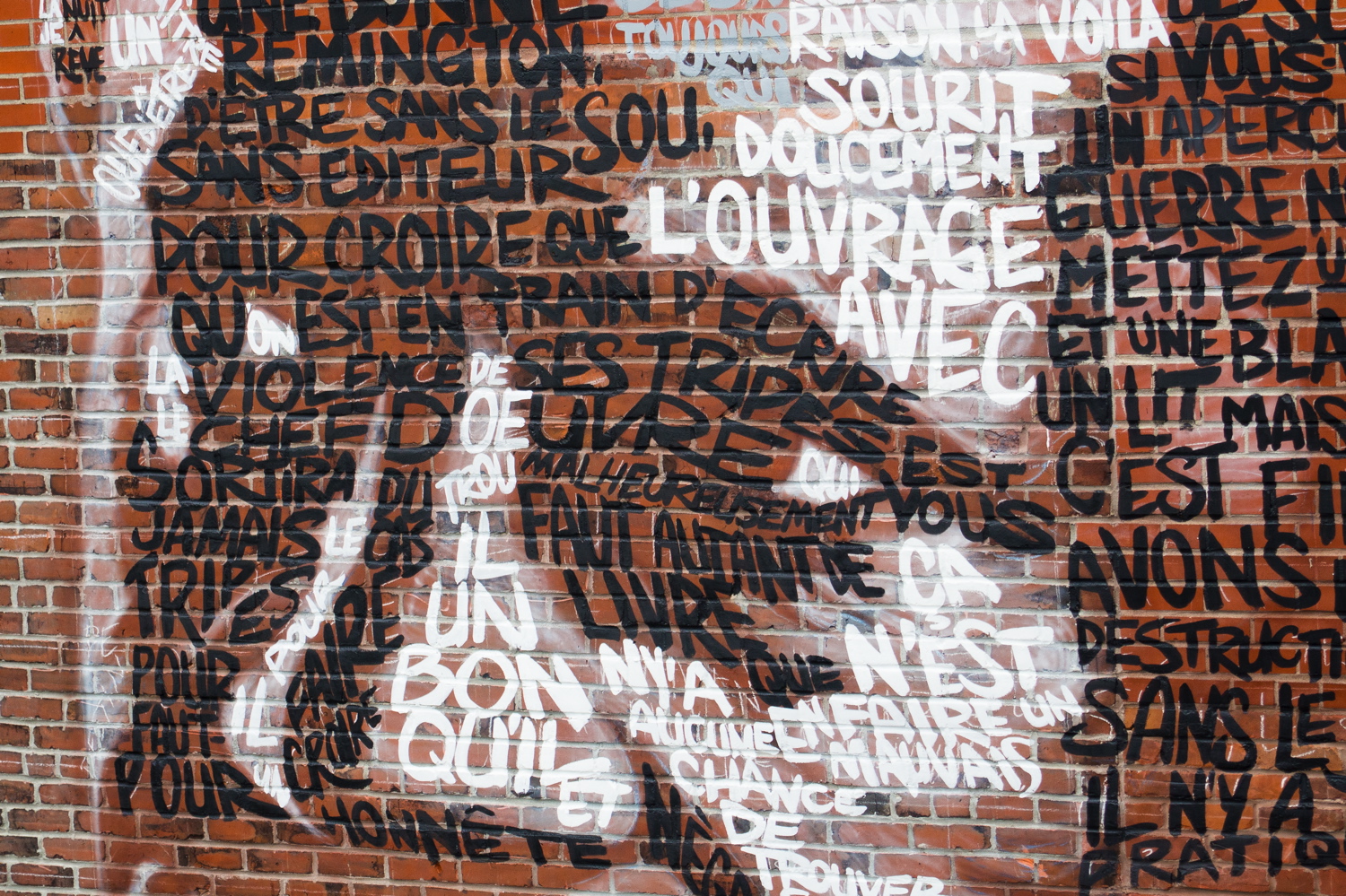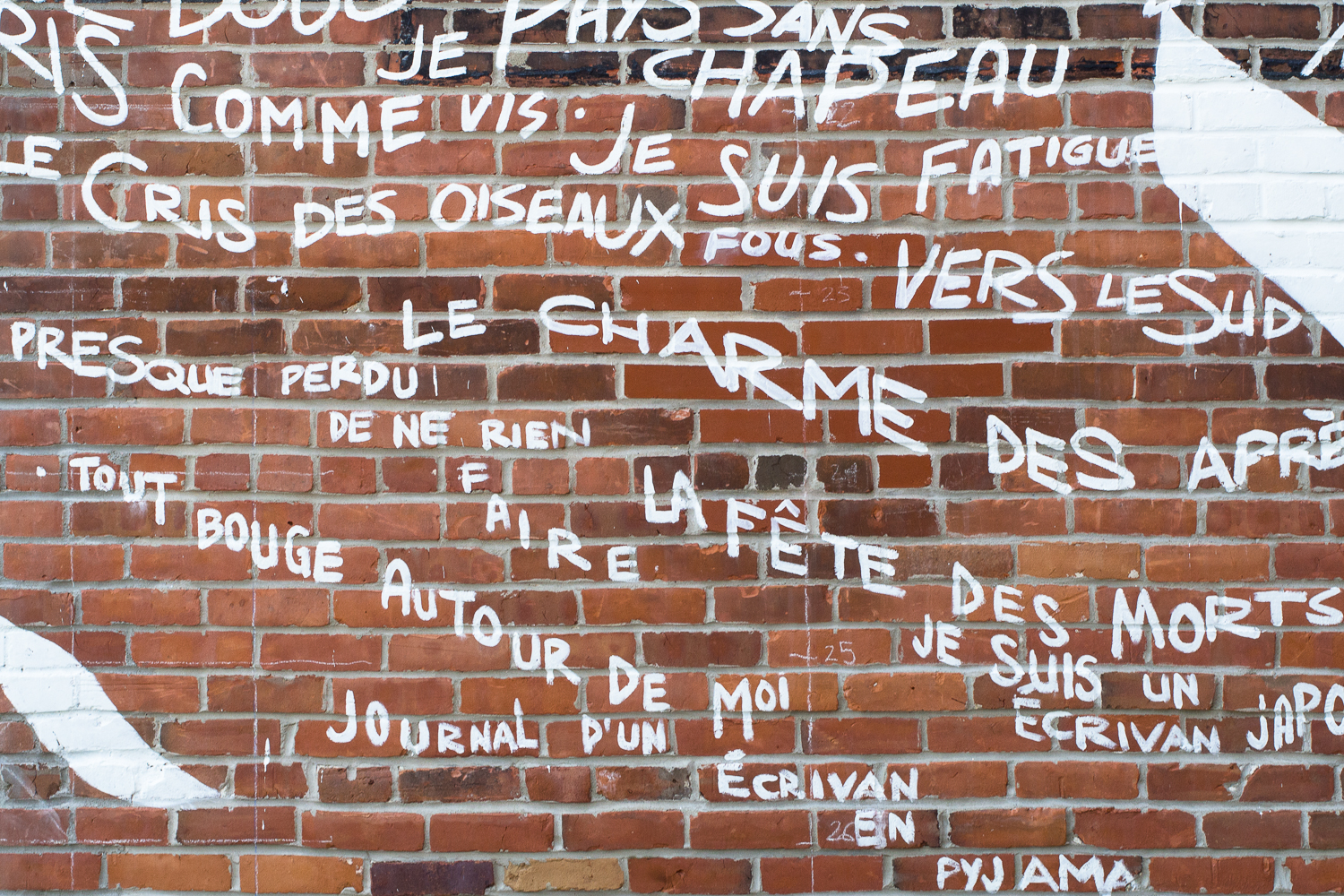 Véritable rencontre entre les arts visuels et la littérature, ces « murs à mots » soulignent l’historique du secteur comme un haut lieu de savoir (Université de Montréal, UQAM, école littéraire de Montréal, etc.), le 100e anniversaire de la Bibliothèque Saint-Sulpice (sise sur la rue Saint-Denis) et le 45e anniversaire de l’UQAM en 2014 ainsi que le 10e anniversaire de la Grande Bibliothèque en 2015.
