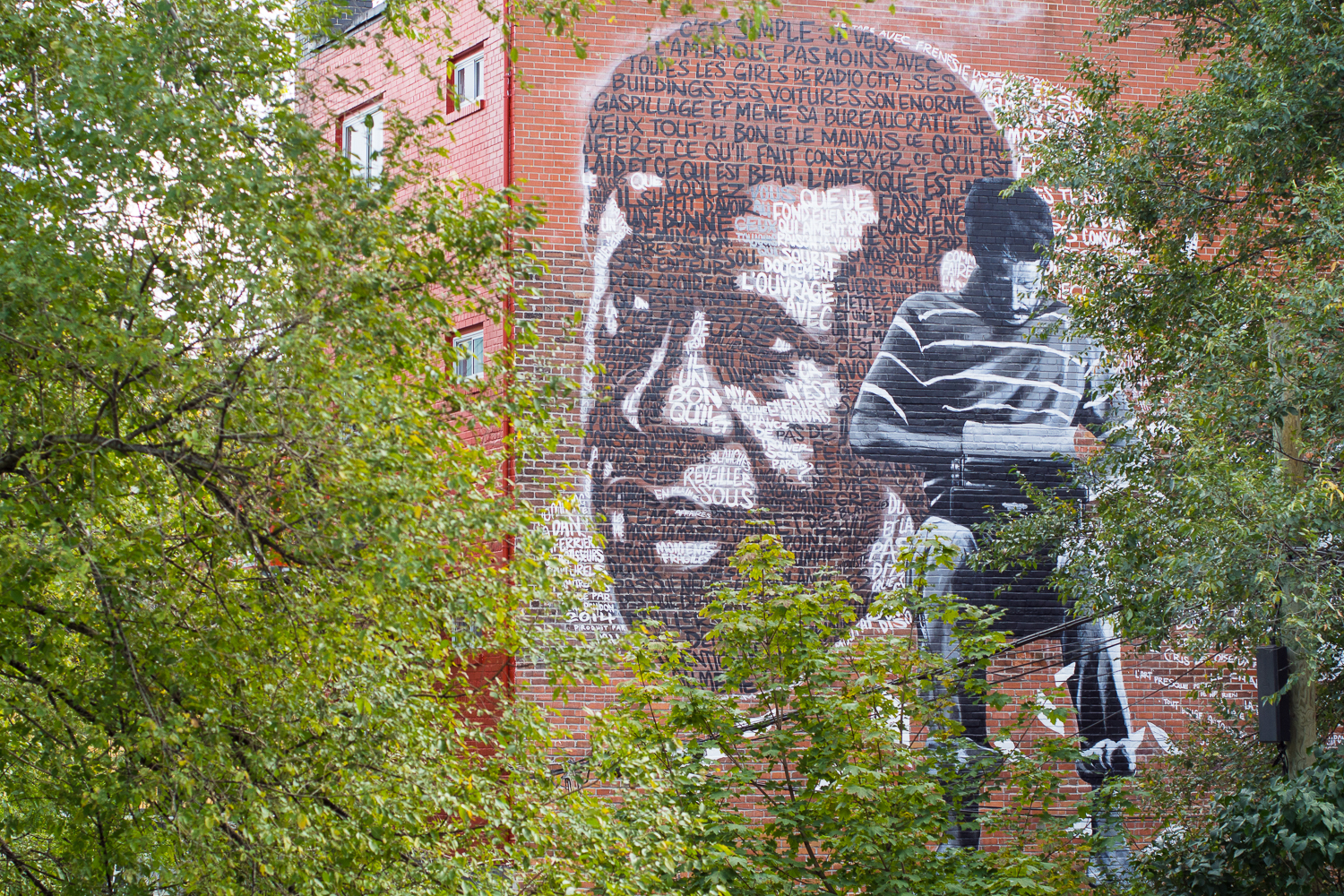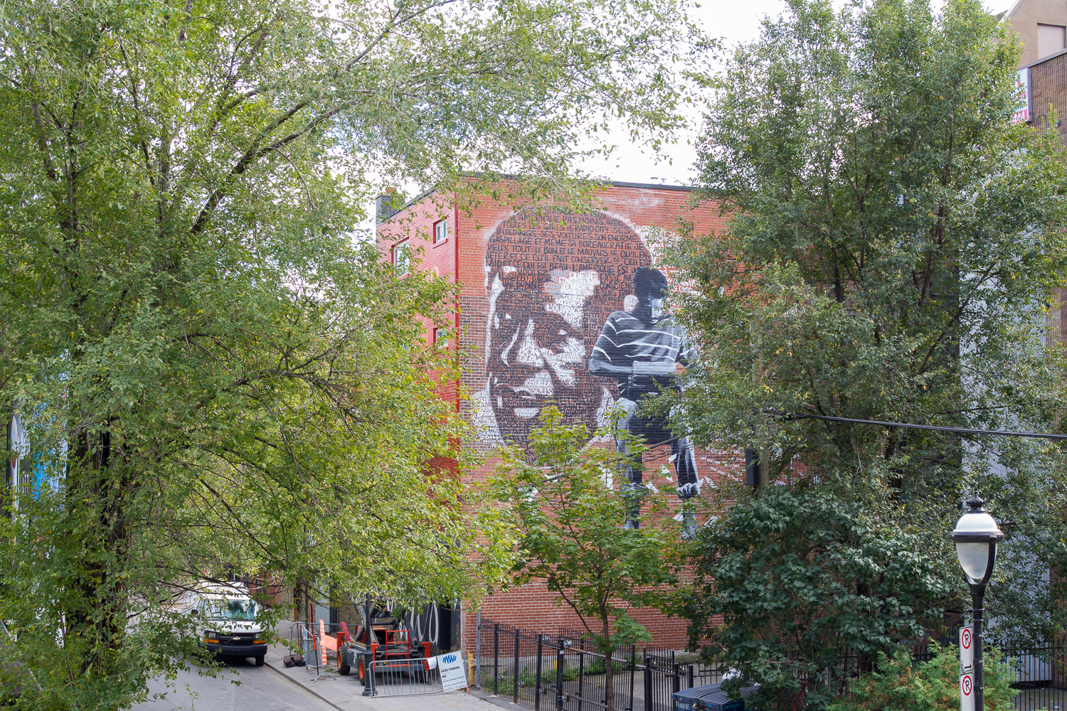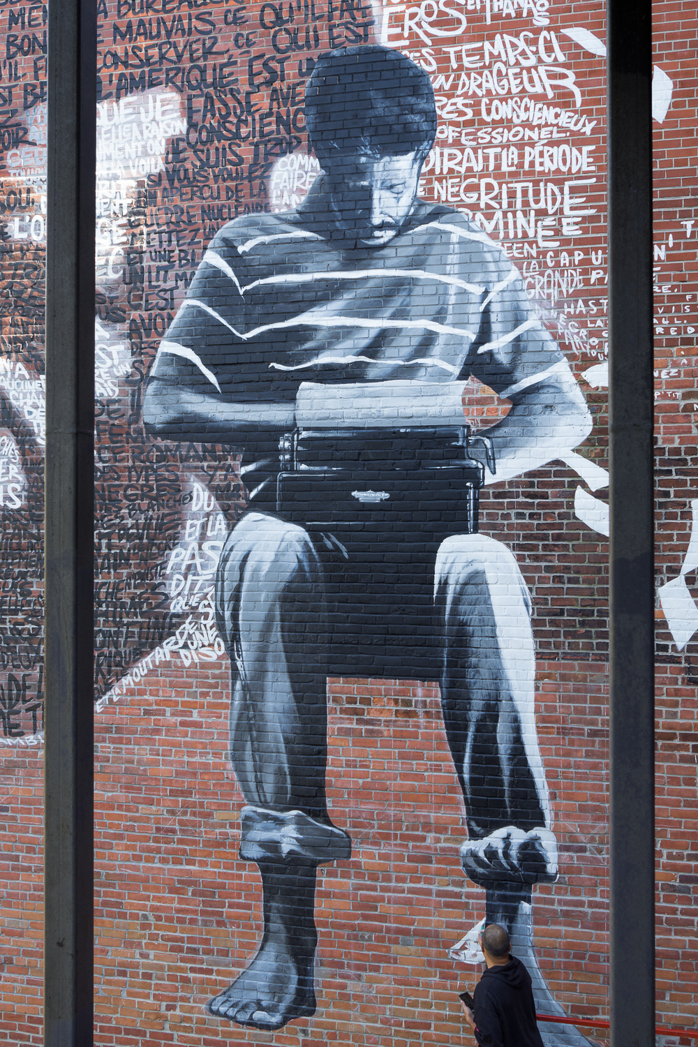 Dans le cadre de sa collection Les bâtisseurs culturels, MU rend cette fois hommage à Dany Laferrière par une murale réalisée par Gene Pendon, débutée en 2014 et terminée en 2015.