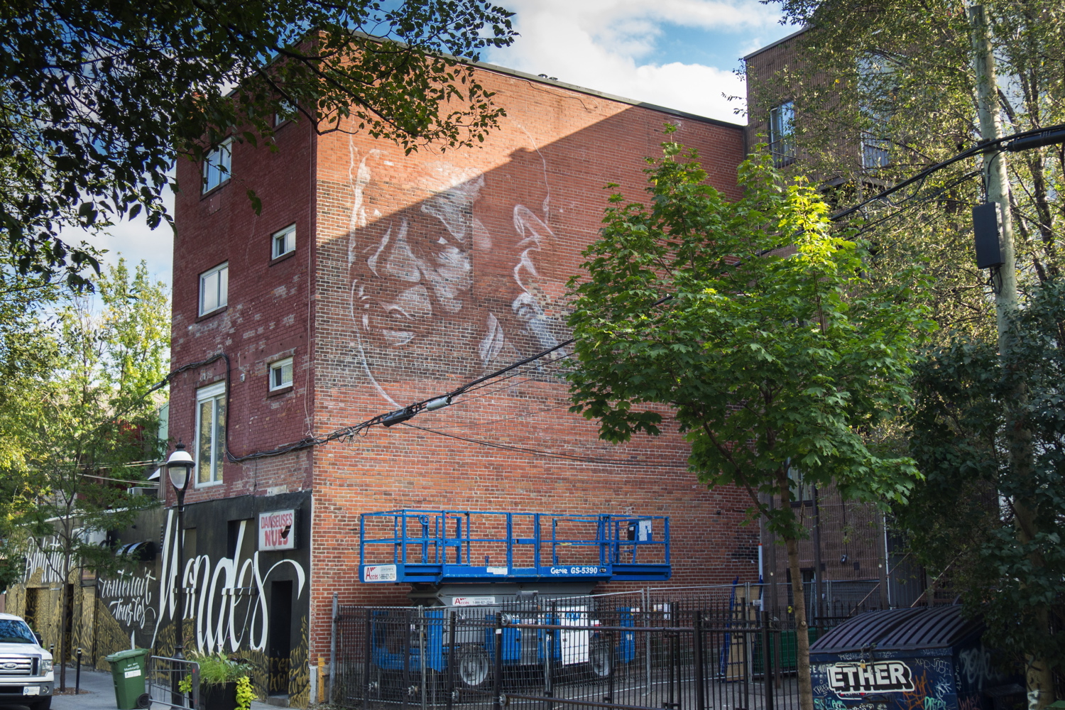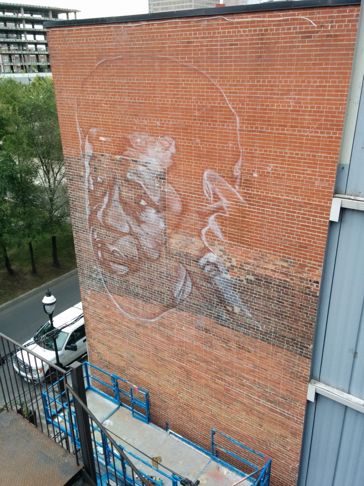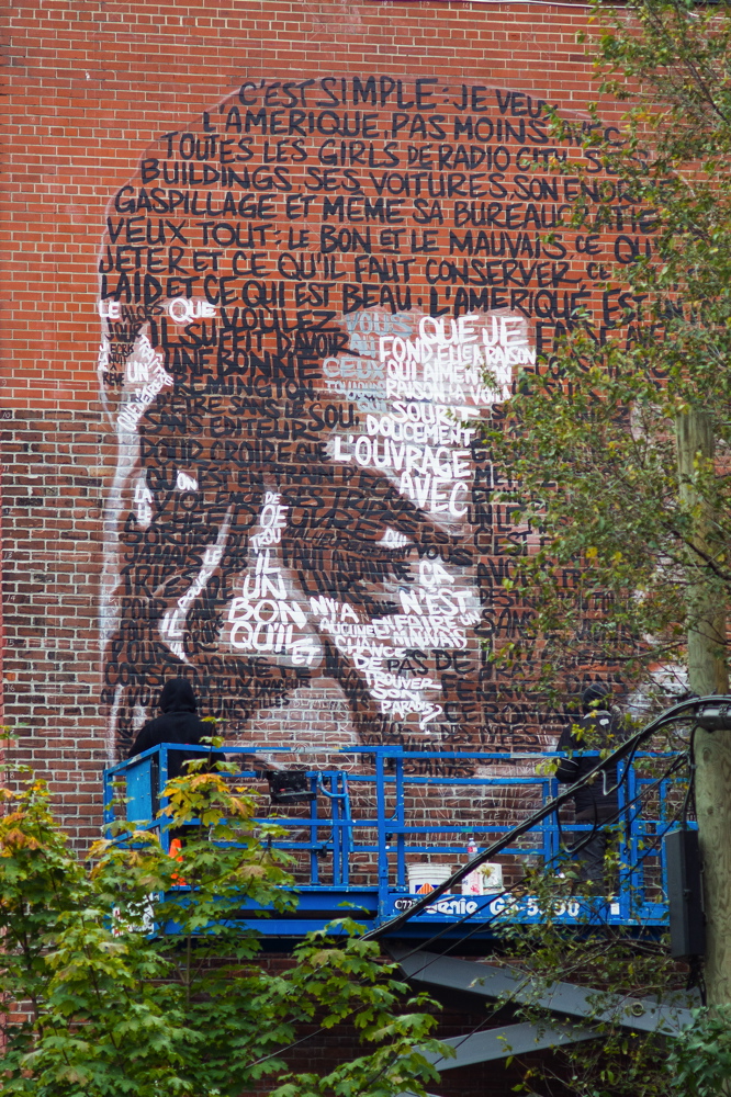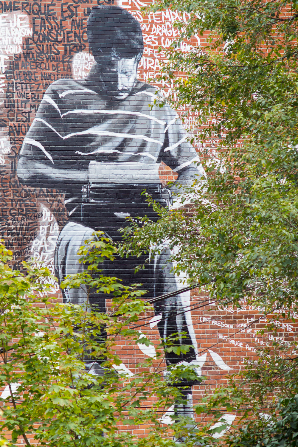 Dans le cadre de sa collection Les bâtisseurs culturels, MU rend cette fois hommage à Dany Laferrière par une murale réalisée par Gene Pendon, débutée en 2014 et terminée en 2015.