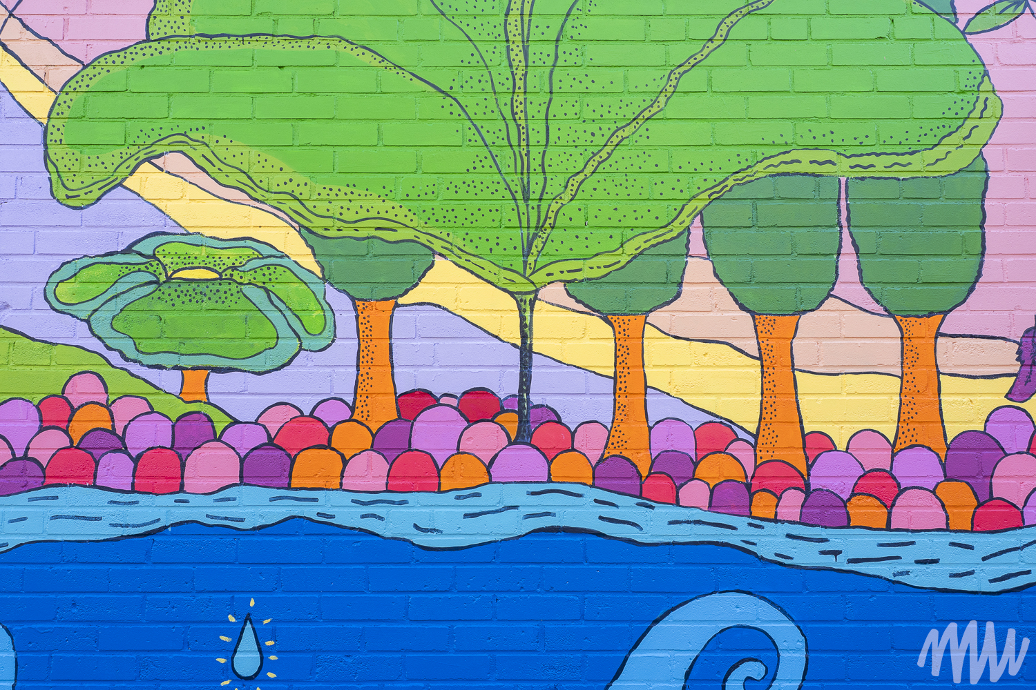 Les Oiseaux s’inscrit dans la dynamique culturelle de Verdun, renforçant la masse critique d’œuvres et d’initiatives qui font de l’arrondissement une destination culturelle incontournable. Réalisée par Catherine Ocelot, la murale intègre différents éléments qui émanent des ateliers de médiation réalisés avec des élèves de l’école Notre-Dame de Lourde. La présence de l’eau rappelle le canal Lachine et la porte évoque celle d’une porte de classe qui s’ouvre sur un monde plein d’aventures. Les oiseaux protecteurs veillent sur les enfants et leur imaginaire, leur permettant de poursuivre leurs rêves et leurs découvertes du monde. Alliant imaginaire et aventure, l’artiste a mis de l’avant le désir de découverte des jeunes et l’importance de la nature dans le quartier de Verdun, comme dans la ville de Montréal.