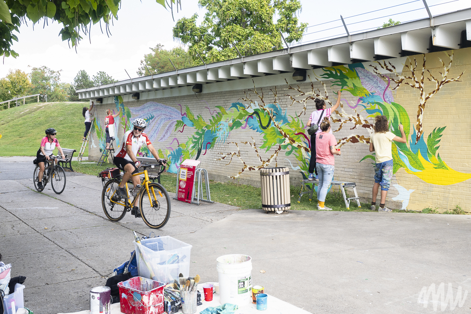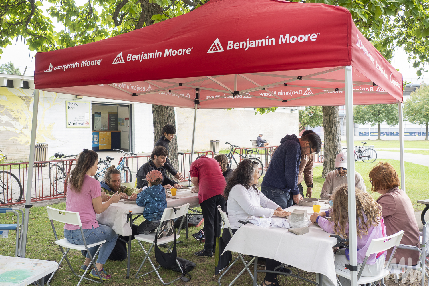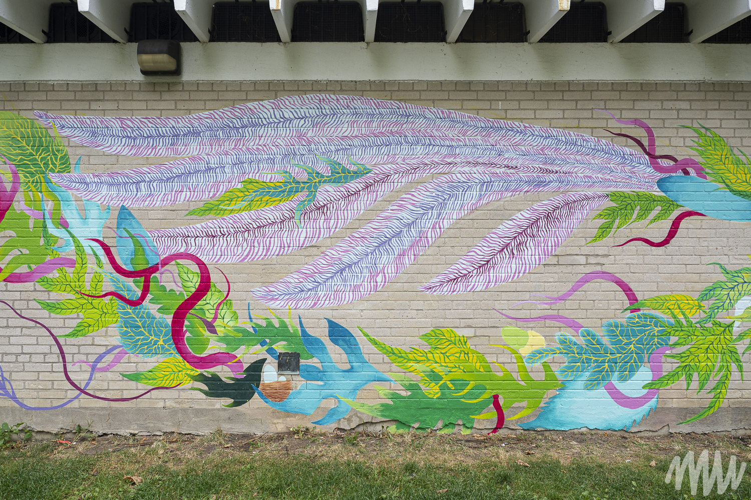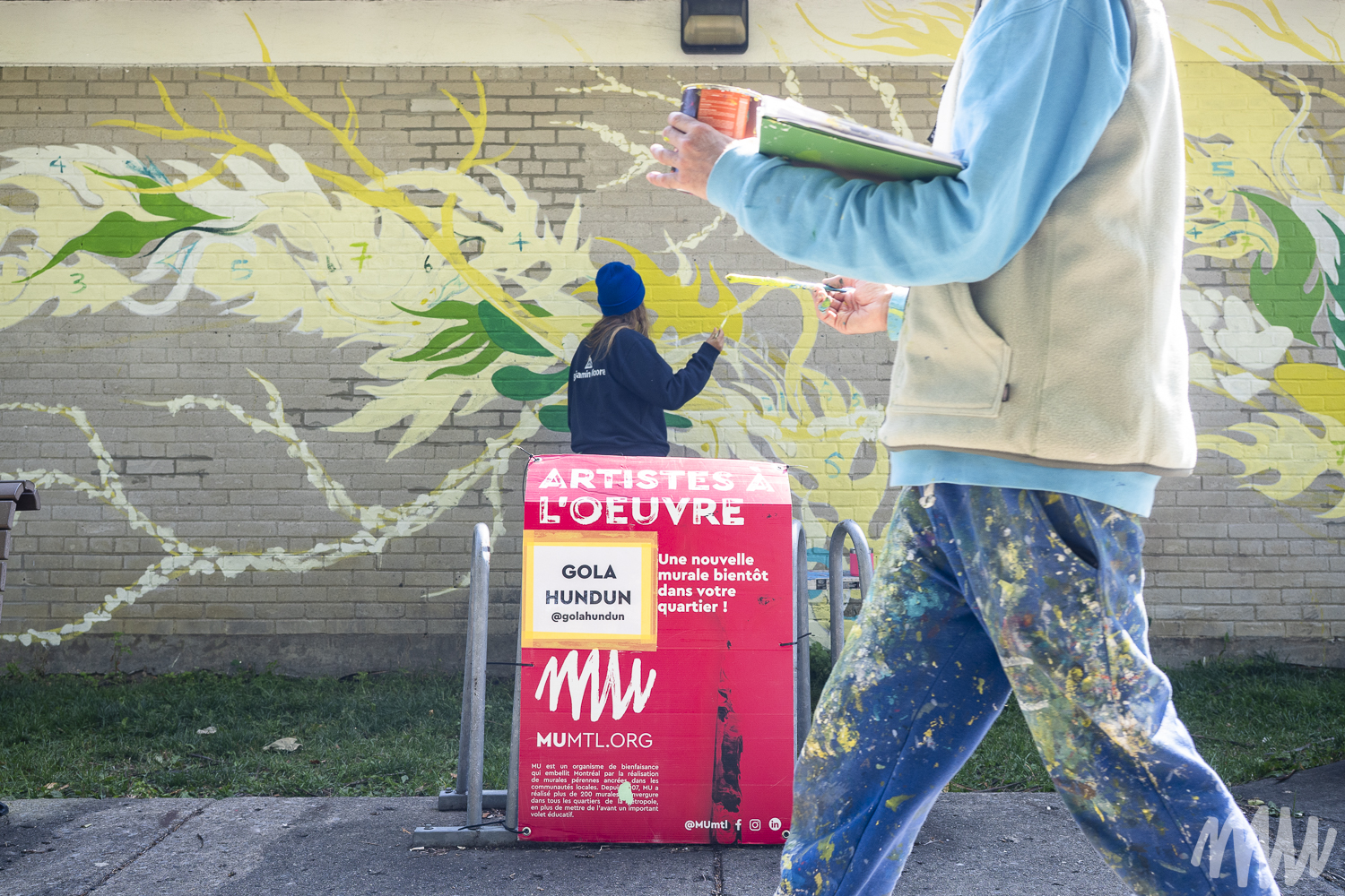À l’occasion du centenaire du parc Jarry, l’Arrondissement de Villeray–Saint-Michel–Parc-Extension a confié à MU la réalisation d’une murale monumentale sur le pavillon des baigneurs qui abrite la piscine municipale, au cœur du parc. C’est l’artiste italien Gola Hundun, reconnu pour son approche profondément écologique, qui a été invité à concevoir cette œuvre unique. Inspirée par les rythmes de la faune et de la flore, sa création explore les liens sensibles qui unissent les êtres vivants à la biosphère.